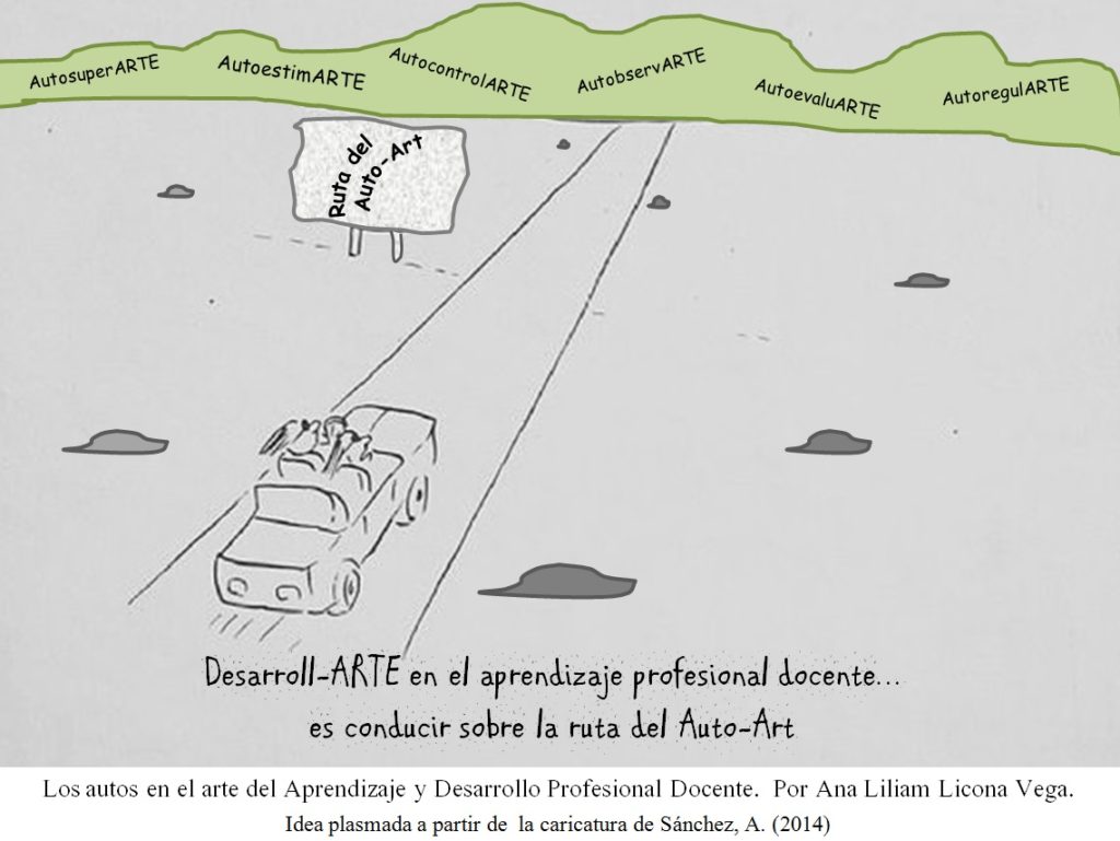 Con este pensamiento, se re-elabora una caricatura a partir del REA que facilita Anton Sánchez en pinterest. Se pretende con esta re-creación plasmar los diferentes autos necesarios al recorrer una ruta donde se busca el autoperfeccionamiento, autoaprendizaje y autodesarrollo docente.