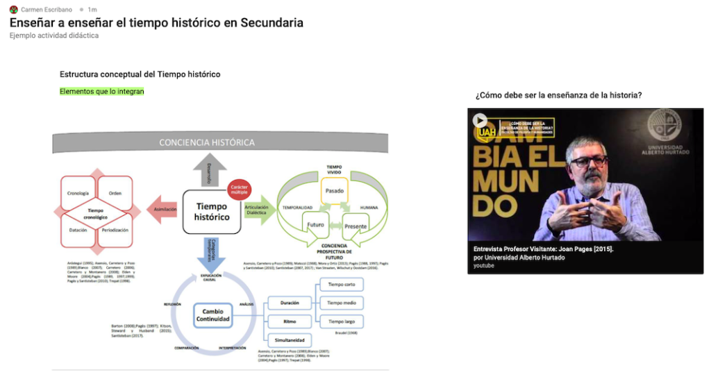 Presentamos este muro interactivo donde se recogen contenidos relativos al concepto de tiempo histórico y su enseñanza y, asimismo, se presenta una propuesta didáctica para la enseñanza del tiempo histórico en un entorno real.