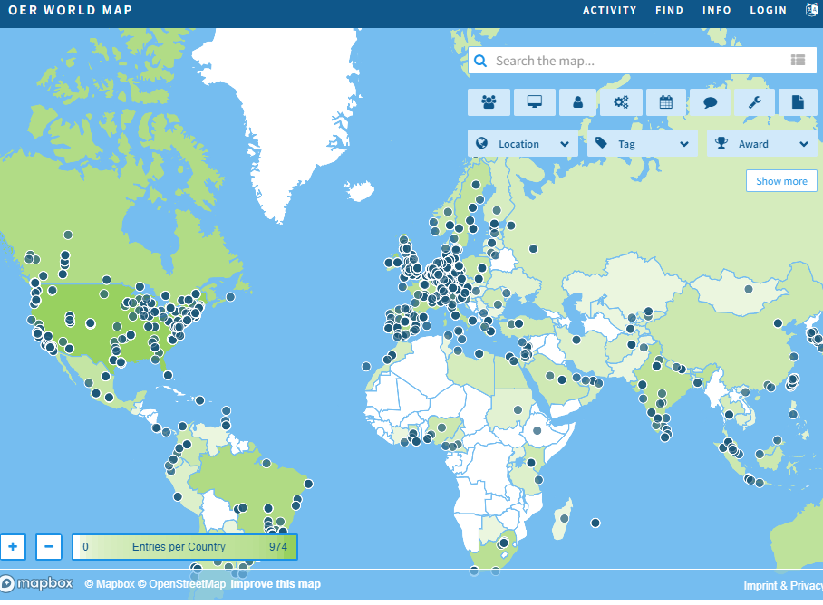 El OER world map tiene una licencia CCO 1.0 universal , es decir que lo que se publica allí es del domino público. Se renuncia a los derechos de autor. Y añaden que esto es así a menos que se indique lo contrario.