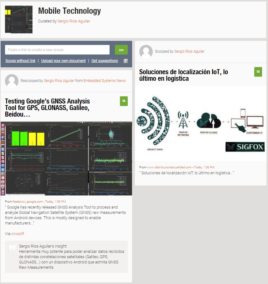 He podido hacerlo con Scoop.It!, de forma realmente cómoda, creando mi canal, públicamente accesible en https://www.scoop.it/topic/mobile-technology-by-sergio-rios-aguilar